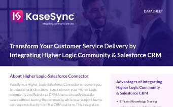 KaseSync is a powerful integration tool that connects Higher Logic Vanilla communities with Salesforce, enabling smooth data flow between the two platforms. By syncing case-related information in real-time, the connector simplifies case management, accelerates case resolution, and enhances the overall customer experience, which drives improved customer engagement. Furthermore, by leveraging KaseSync, organizations can drive operational efficiencies, leading to better business outcomes.